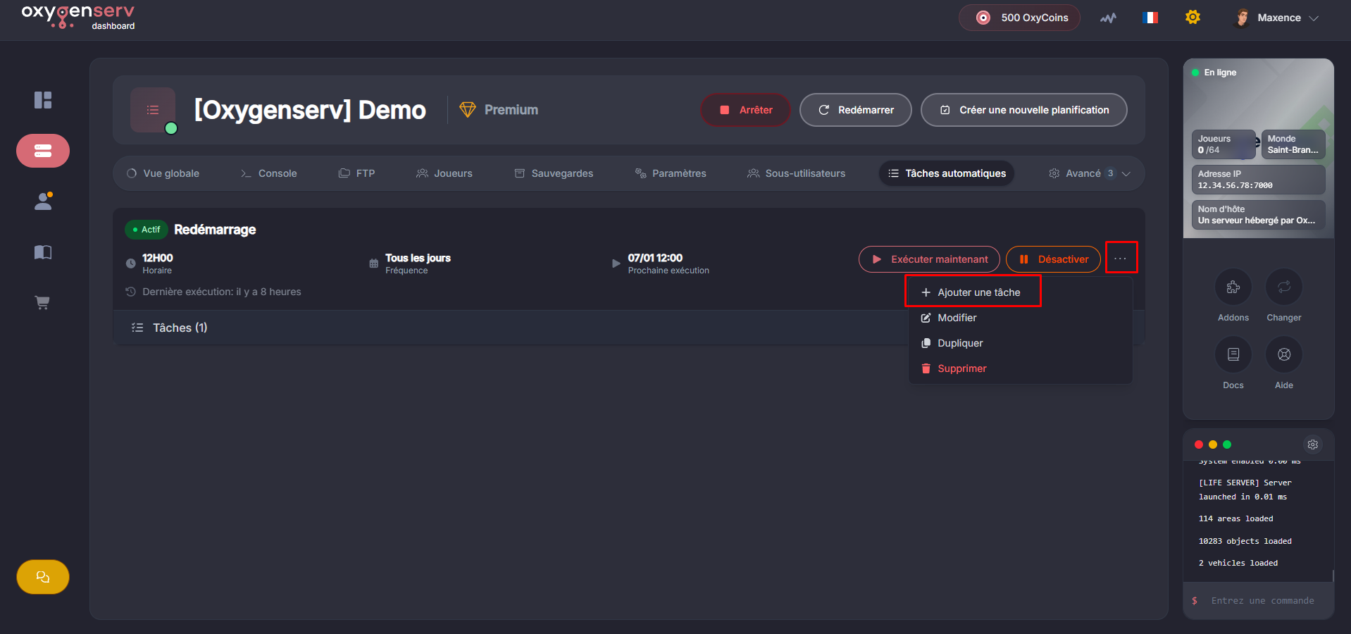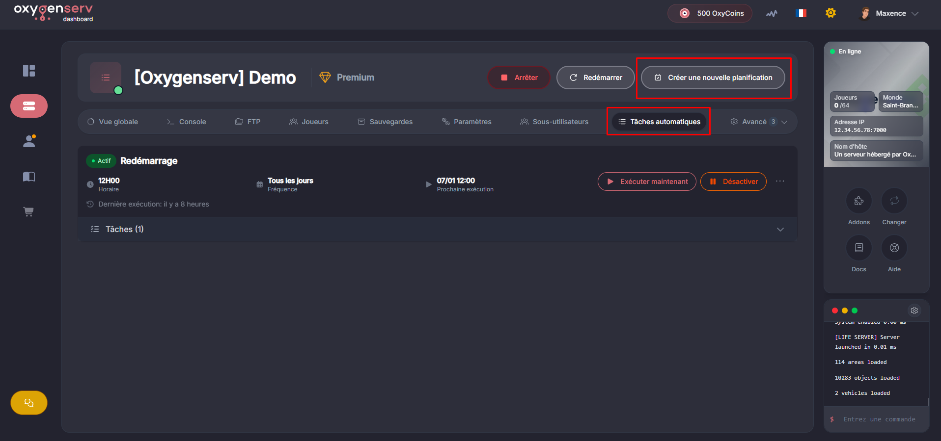 Les **tâches automatiques** servent à exécuter des actions à heures fixes.\