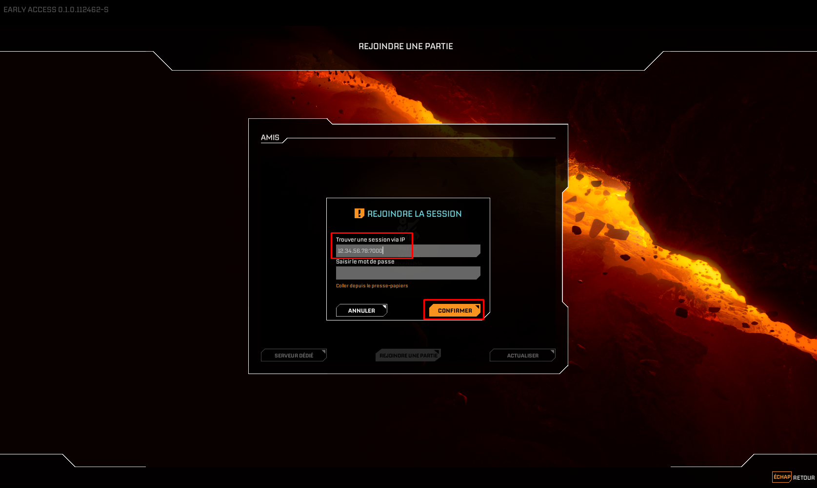 Dans le jeu, cliquez sur **Rejoindre une partie**.